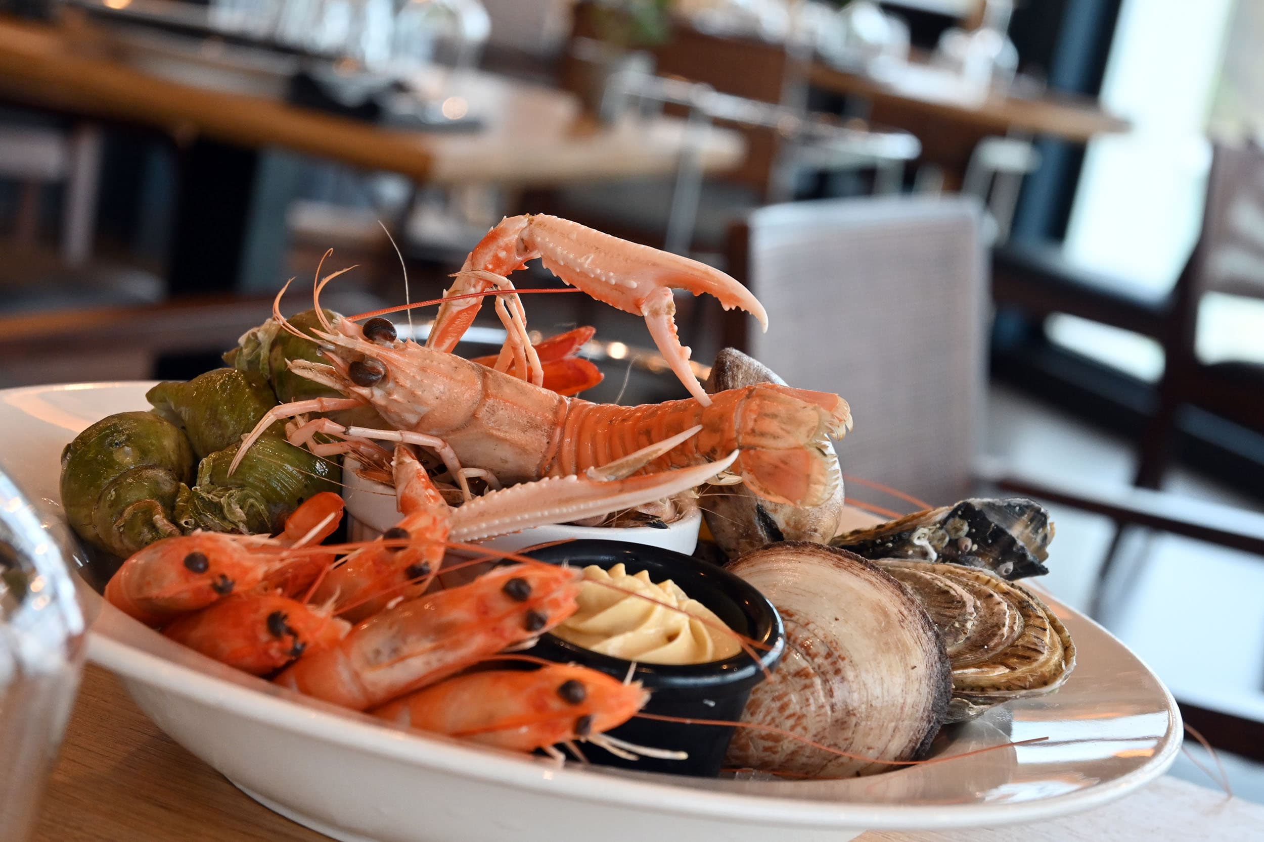 Avec ses deux salles ouvertes sur l’horizon, le restaurant vous invite à savourer toute la richesse des saveurs marines de la Côte d’Opale.